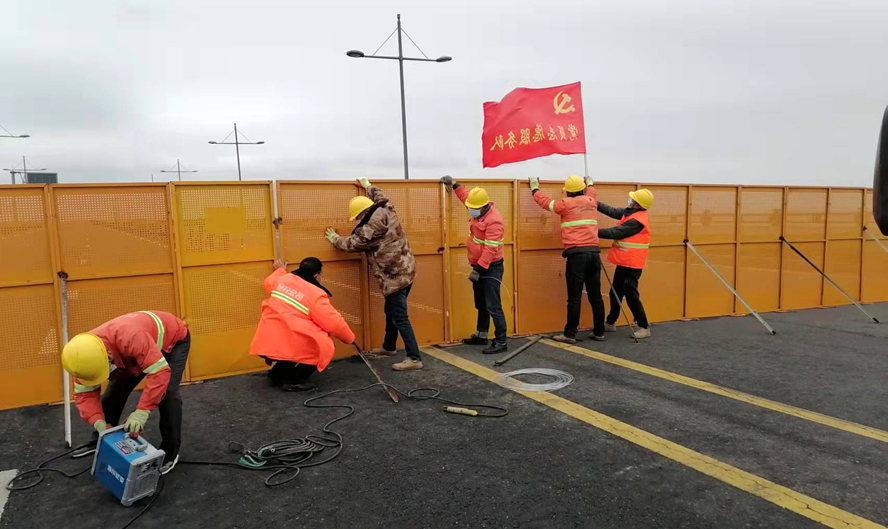 安装加固步步到位。“今天市政在岗9人。”17号一大早,市政经理高峰就准时在公司防疫管理群里报告人数。可是此时这岗位却设在狂风凌洌、无遮无挡的海滨大道上。肆虐的狂风吹倒了许多防护栏,从清晨开始,高峰就带领市政突击队沿着合作路、海滨大道等八个路段一路巡查一路抢修。面对狼藉的现场,高峰沉着冷静,有条不紊地带着大家用力地扶起扶正,再加桩固定。施工现场,风声伴着加油的号声、汗水伴着有节奏地敲击声,这场景,不正是一幅感人的“铮铮铁骨铸坚壁”的动人画卷吗?自3月5日疫情袭来,市政突击队就马不停蹄地奋战在新区的各个角落。施工期间,高峰他们白天黑夜地连轴转,中午来不及休息便蹲在路边吃快餐,为了抢工期,有时竟加班到深夜12点。短短的10天,他们在做好其他市政服务工作的同时,已经先后安装完成了2000多米的道路围挡,让病疫“无路可逃”。