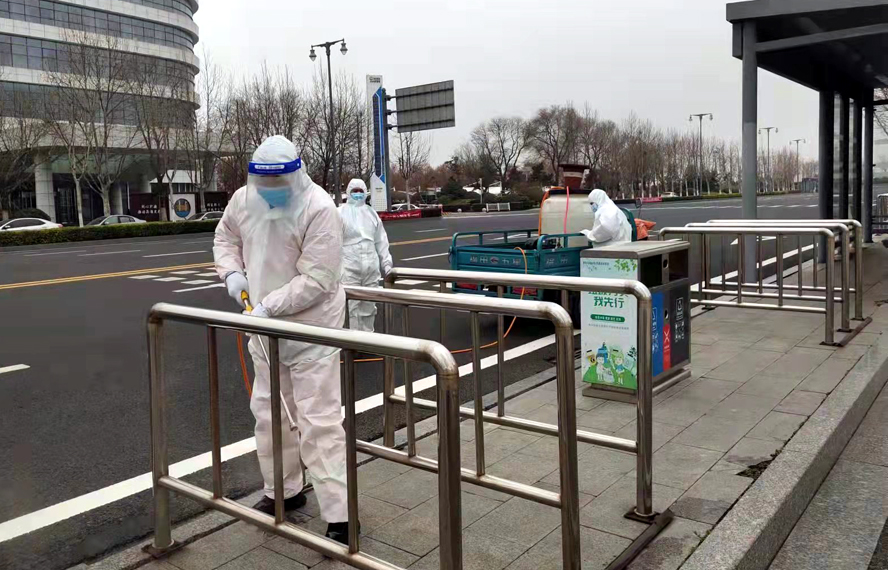 连续两天狂风大作,气温骤降,恶劣的天气给徐圩悦升公司保洁、绿化养护及市政维护等工作带来了极大的影响。面对困难,悦升公司强化部署、统筹调度,各条战线上的“抗疫突击队”恪守职责,以无畏、担当、奉献的精神始终坚守一线,出色地完成了各项常规及应急保障工作。 清洁消杀环环相扣。3月16日上午11时,悦升总部门前水雾弥漫,多台作业归来的车辆正有序地进行着消杀清理。据公司徐总介绍,自疫情发生以来,公司积极配合新区疫情防控部署,全方位构筑防疫联控网络。每天7点公司的消杀车就开始对徐圩新区、邻里中心、居民小区等65万平方米的辖区进行大规模的消杀作业。公司在做好辖区正常的人工保洁工作同时,每天出动大型作业车辆4个台班,清扫路面长达6个小时,垃圾清运班每日清运各类垃圾达10余吨。下午3点半,狂风伴着寒流,市劳模龚飞正带领班组成员对徐圩核心区域内的公交站台、果皮箱进行全面清洁消杀,清掏、装袋、搬运、消毒,不断重复的操作流程既繁琐又劳累,寒风中,他们的防护服早已湿透,但却无人顾及。