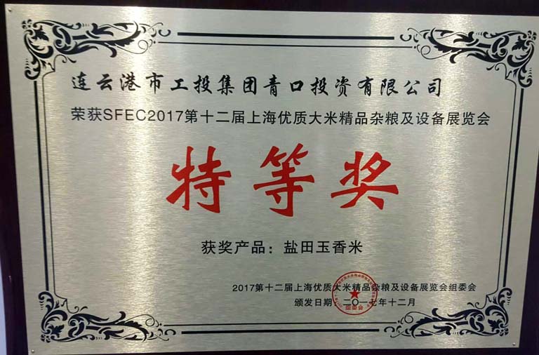 日前,青口投资公司“盐田玉”大米在2017第十二届上海优质大米及精品杂粮展览会上荣获特等奖,这是继“江苏好大米”称号之后的又一重大殊荣。