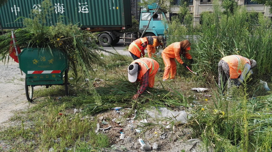 在昌圩湖环湖路南侧一处公共厕所处,裕升养护公司20多名环卫保洁工人正在清理公厕周边的杂草、建筑垃圾,有的在割草、有的在搬砖、有的在推车,一个个汗流浃背,忙得不亦乐乎。正在现场忙碌的保洁大队长刘保军对笔者说:“这一块段还没有交给leyu乐鱼web登录入口养护,一直无人管理,杂草丛生,成为建筑、装修垃圾的堆放地,根据开发区创卫环境卫生无死角要求和华茂公司生产技术部门指令,leyu乐鱼web登录入口裕升养护公司承担这一区域环境卫生突击整治任务,从绿化保洁班组抽调20多人来搞突击,大家面对天气炎热、工作量大、清理困难等因素,发扬不怕吃苦、敢打硬仗的华茂精神,奋战在突击现场,每个人都汗流不止,工作服全被汗水浸透,昨天leyu乐鱼web登录入口已在这里整整干了一天,由于垃圾量大、杂草面积大,leyu乐鱼web登录入口动用了装载机等机械设备,运杂草的三轮车跑近百趟,清理建筑、装修等垃圾数十吨。估计今天下午能够全部结束。”
