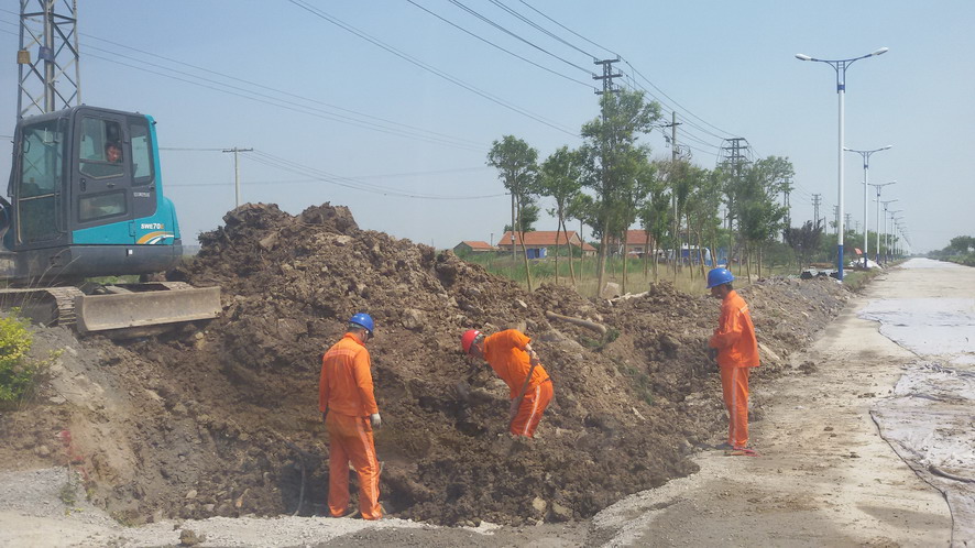 近期因大浦路翻修改造,挖掘机等大型施工器械一不小心就可能将路灯电缆挖断,造成路灯无法正常工作,该路段的路灯故障时有发生。当日上午,维修组电工对该路段的一处路灯故障段进行检查,找出原因并修复,按照工作流程,来到路灯故障路段后,他们首先进入位于绿化带内的路灯控制箱内进行检查,虽然检查前后只用了不到半小时的时间,但是身穿长袖工作服,头戴安全帽,手带绝缘手套,在如此闷热的条件下进入狭小的空间作业,汗水瞬间从每个毛孔中冒出,不一会他们的头发和上衣就已湿透。上有烈日炙烤,下有蒸腾的热浪,每个人的脸上都挂满了汗珠,刚一擦拭完,汗水重又“涌出”,并顺着脸颊滴向地面。在强光的照射下,长时间半蹲后起身,让人不免产生眩晕的感觉。