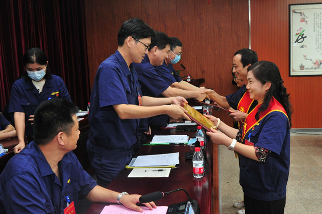 会上对2021年度先进集体、示范班组、先进个人、首批QC小组成果进行了表彰。