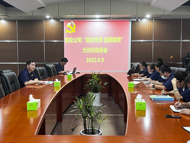 8月9日上午,杜钟氨纶公司党委于1号会议室召开“解放思想、提质增效”主题活动讨论动员会。会议由党委书记胡传法主持,各支部书记、三组联建班组长、党群工作部人员参加会议。