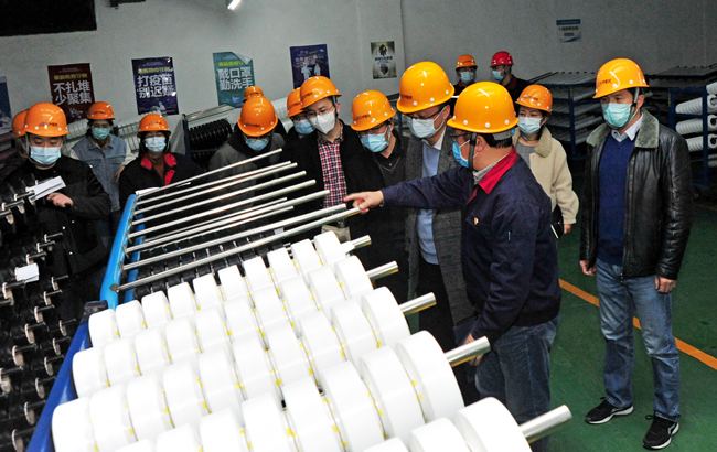 安处长一行参观了展厅、八期生产线、自动包装线。在随后的交流座谈会上,张斌总经理详细地介绍了杜钟氨纶的发展历程及近年来的生产运营情况。胡传法书记具体汇报了氨纶党建工作的开展情况,着重介绍了三组联建的实施背景、重要意义、取得成效。工信局调研组向我司宣讲了有关政策,并对我司的数字化项目提出建议。