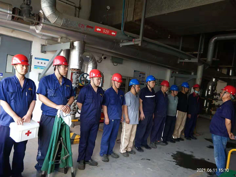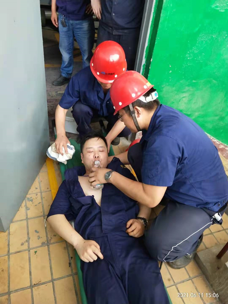 随着持续高温,一线员工中暑风险在逐渐加大,为了防止一线员工有人中暑时,才取什么应急办法,同时检验我部职业危害救援组织反应速度、救援能力以及协同配合、演练救援技能,氨纶公司生产一部于2021年6月11日(15:00)开展了夏季“防止中暑应急处置演练”,演练队伍针对一名员工发生高温中暑危害开展应急救援演练。最后生产一部部长张海波针对本次演练存在不足及改进方向做了总结。本次活动共有13余人参与演练,安全部胡文斌参加此次演练。
