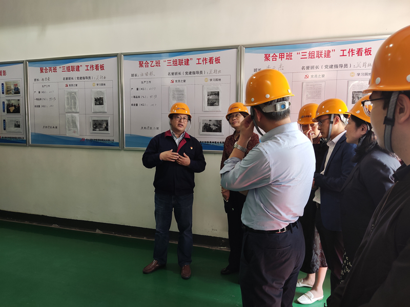 一行人先后参观了公司展厅、八期生产线、自动化包装线等。参观过程中,公司总经理张斌对我公司的发展历程,差别化产品、战略优势、积极开拓营销渠道,创新运用新媒体传播方式推进商品销售等进行了详细介绍。中国科学院院士朱美芳对我公司低温热粘合氨纶、抗菌氨纶、驱蚊氨纶及氨纶生产全流程自动化、智能化生产线等给予了高度评价,朱院士指出氨纶公司要重视自主研发能力的培养和提高,进一步加大研发投入,不断拉长产业链条,提高产品利润,全面提升企业核心竞争力。