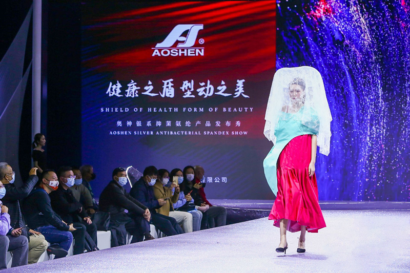 3月18日,“健康之盾,型动之美——杜钟新奥神银系抑菌氨纶产品发布秀”精彩呈现,中国工程院院士蒋士成、中国化学纤维工业协会会长陈新伟、副会长吕佳滨、国家纺织产品开发中心总工程师陈宝建等莅临现场,涉及化纤、面料、服饰等领域的客户代表400余人参加了本次发布秀。