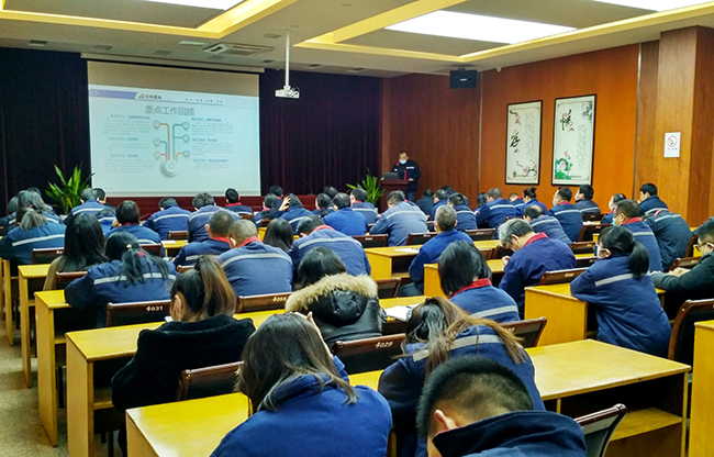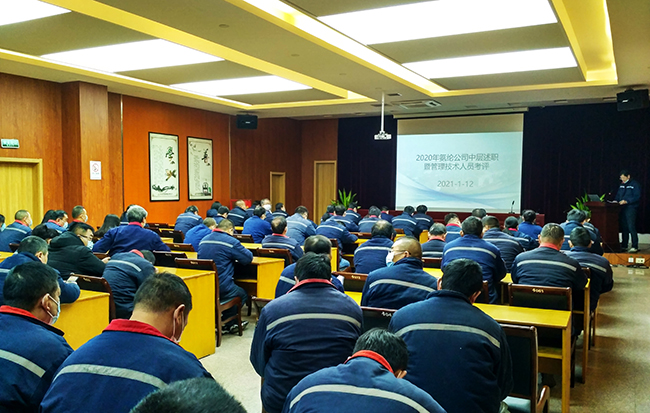 1月12日上午,氨纶公司2020年度中层管理人员述职暨管理技术人员考评会议在一楼多功能厅举行。公司管理及技术人员100余人参加了会议。