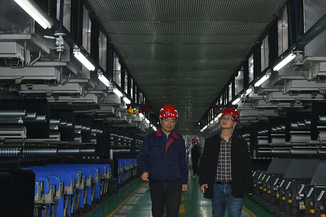 规划编制组一行先后参观了公司展厅、八期生产线、自动包装线。调研过程中,副总经理张华卫围绕“十四五”的发展思路、重点任务、重点领域,详细介绍了公司发展历程,产品特点,积极开拓营销渠道,创新运用新媒体传播方式推进商品销售等进行了详细介绍。规划编制组对我公司低温热粘合氨纶、抗菌氨纶、驱蚊氨纶及氨纶生产全流程自动化、智能化生产线等给予了高度评价。规划编制组指出氨纶公司要借助“十四五”规划编制,精心谋划,立足实际,做好规划编制工作顺利进行。