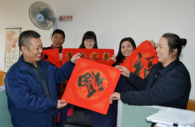 这些书画作品出自连云港知名书画家之手,春联对仗工整、简洁精巧的文字描绘美好形象,抒发了美好愿景。作为新年的祝福,此次活动广受员工欢迎,大家表示活动既营造了浓浓的节日氛围,也拉近了员工之间的距离。