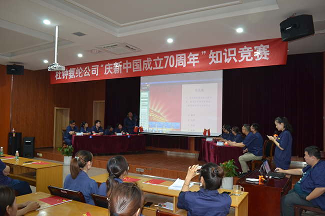 为了切实加强党的基层组织建设,增强党员队伍生机活力,组织引导各党支部和广大党员争发展之先、创和谐之优,以迎接党的70周年生日。2019年9月26日,氨纶公司“庆新中国成立70周年”知识竞赛在多功能厅举办。党委书记赵万明、公司总经理张斌等领导班子成员出席了本次活动。