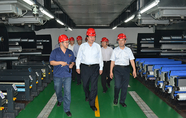 徐市长一行深入公司八期车间、立体包装库等一线生产区,对氨纶丝生产工艺流程以及公司生产运营情况进行了详细了解。观摩期间,公司总经理张斌向徐市长一行介绍了公司八期项目运行状况、实施差别化战略的成效以及公司中长期规划目标。