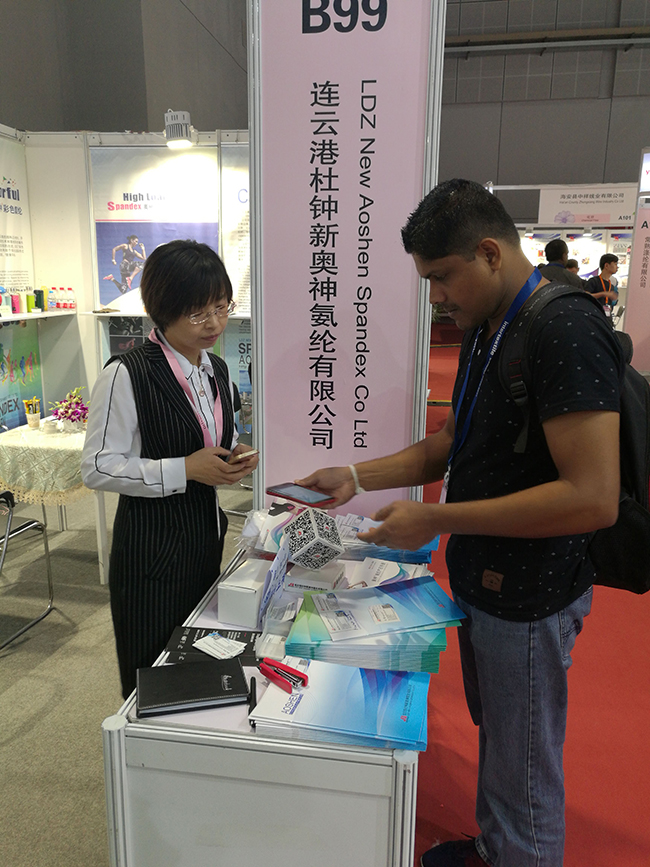 展会期间,奥神团队接待了来自美国、哥伦比亚、墨西哥、印度、孟加拉、埃及、乌克兰、日本、韩国、港台等十六个国家和地区的客户逾50家;同时还与来自山东、浙江、福建、广东等地的针织、包纱、织带、卫生用品厂家进行了氨纶应有用方面的技术交流与探讨。来自墨西哥、印度、韩国、葡萄牙等国家的老客户也纷纷前来造访。