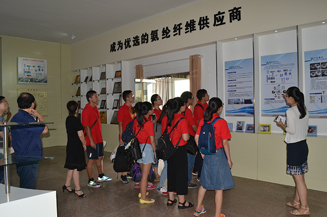 2017年8月7日,东华大学10位研究生赴氨纶公司开展为期2天的暑期调研,公司总经理张斌接待了研究生调研组,带领学子们参观了展厅、生产车间、研发中心。座谈会上,张总对公司的发展历程、公司的生产情况、公司差别化产品的优势进行了介绍,大家就弹性纤维的发展现状、发展前景开展了深入交流。
