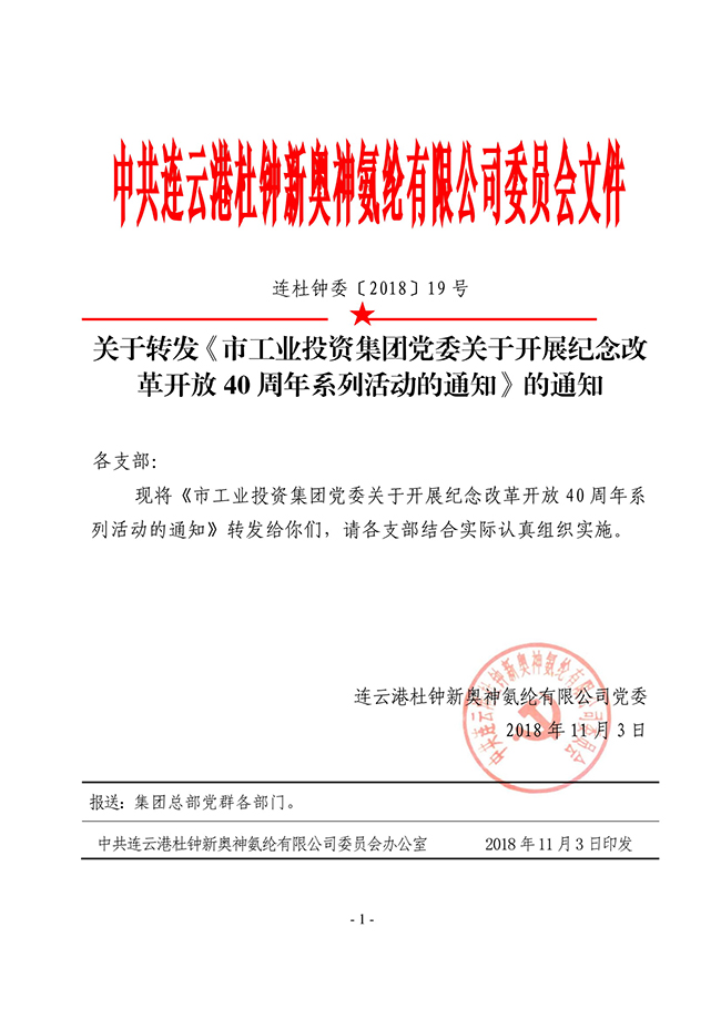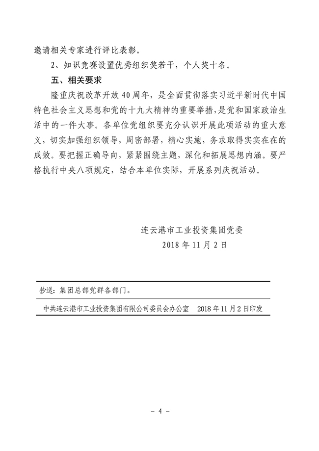 关于转发《市工业投资leyu(中国)党委关于开展纪念改革开放40周年系列活动》的通知