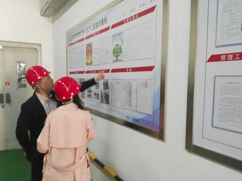考察组一行实地考察了我公司厂区宣传栏、展厅、七期生产现场、食堂、道德讲堂、办公楼等现场,对公司创建文明单位氛围营造工作进行了检查,随后在公司一号会议室听取了我公司文明单位申报工作情况汇报并查阅了相关台账资料。