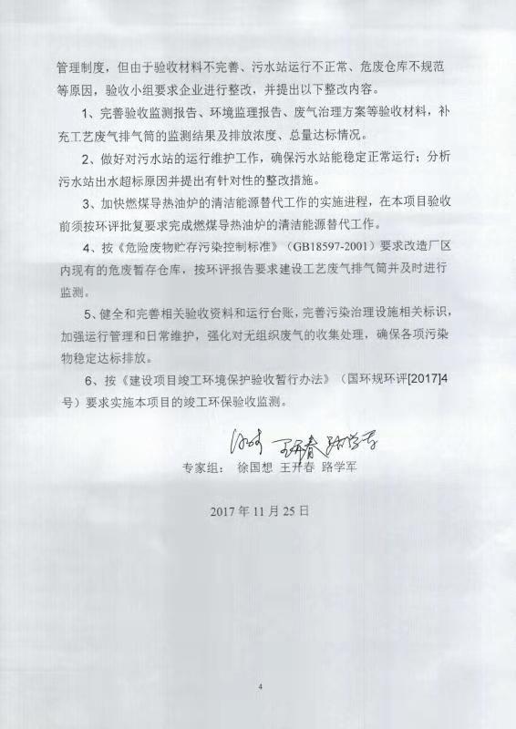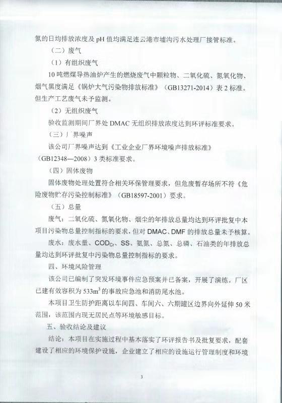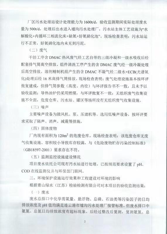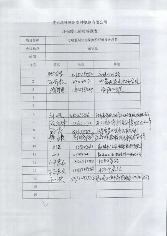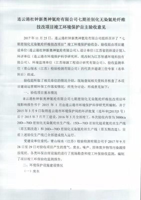 七期差别化无染氨纶纤维技改项目竣工环境保护自主验收意见