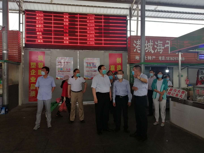 6月26日,连云港市政府副市长徐家保到巨龙农贸市场检查双创和防疫工作,leyu(中国)公司党委副书记、总经理胡建明,公司总经理孙政权、副总经理伏运余陪同检查。
