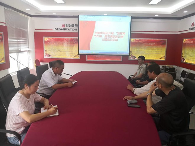 8月21日,台南供电所党支部开展“发挥两个作用,建设美丽连云港”主题党日活动。活动中,党员共同学习了市委十二届十次全会及《“数”读中共江苏省委十三届八次全会重点》会议精神;全体党员交流了“我为美丽连云港建设做什么”的想法和做法。预备党员杨同善表示,坚决执行领导布置的各项任务,特别是近期尚风沂北风电场集电线路的建设,要充分发挥自己团队协作的能力,吃苦耐劳的精神,听从安排,服从指挥,为加快工程建设进度,确保工程建设质量保驾护航。作为一名共产党员要充分发挥先锋模范带头作用,结合工作实际,立足工作岗位,争当先锋先进,创新实干,攻坚克难,用实实在在行动践行初心使命,为美丽连云港建设矢志奋斗、拼搏实干。(刘继美)