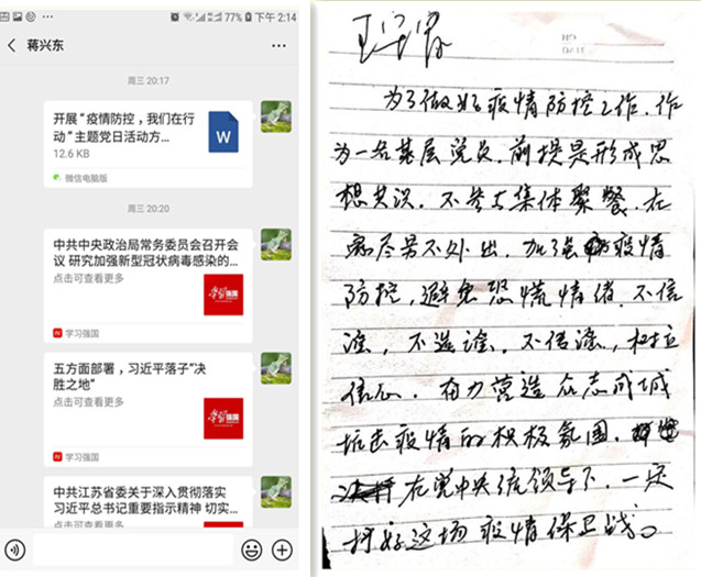 为了引导党员统一思想认识,凝聚思想共识,激发党员做好疫情防控工作的思想自觉和行动自觉。2月12日,台南供电所通过微信方式组织开展了“疫情防控,leyu乐鱼web登录入口在行动”主题党日活动。在微信平台上,党员们共同学习了《中共中央政治局常务委员会召开会议研究新型冠状病毒感染的肺炎疫情防控工作 》、《五方面部署,习近平落子“决胜之地”》、《江苏省委常委会召开会议进一步把疫情防控工作做实做细做到位》重要指示精神;同时,开展了“我为疫情防控出份力”活动,全体党员畅谈疫情防控体会和做法。党员王守富在活动中表示,作为一名基层党员,前提是形成思想共识,不参与集体聚餐,在家尽量不外出,不信谣、不传谣,树立信心奋力营造众志成城抗击疫情的积极氛围,在党中央统一领导下,一定能打好疫情防控保卫战。(刘继美)