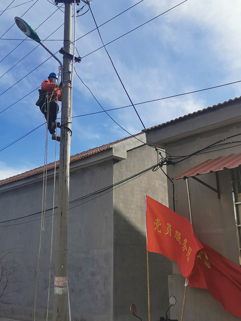 春节临近,经了解,青口盐场红旗村不少路灯年久失修,有灯头损坏现象。为了更好营造浓厚节日氛围,保障居民出行安全,近日,青口供电所组织党员服务队义务为红旗村更换、维修路灯4盏。不仅保障了居民夜间出行安全,也为居民亮堂过节提供保障。(王学忠)