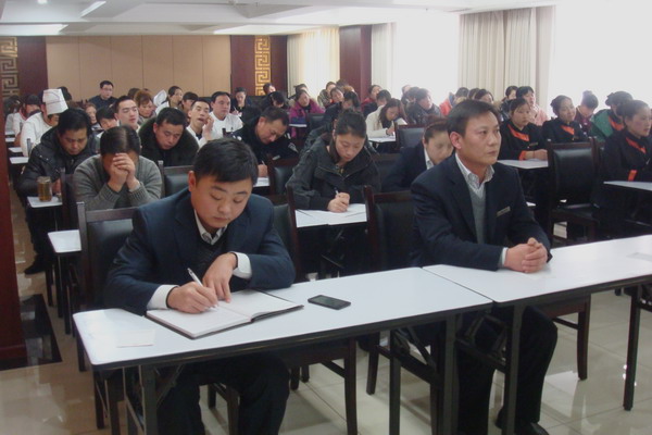 2月23日星期六,淮盐大酒店组织全体员工,进行素质培训。23日下午两点,为提高酒店全体员工素质,给客人提供更加优质的服务,树立酒店良好的口碑,赢得更多的客户,该酒店按照特别准备的详细培训计划,对全体员工进行“酒店员工基本素质培训”。酒店总经理伏运余、总经理助理徐园园和餐饮总监陈明生与员工一起参加了培训。(董淑娟)
