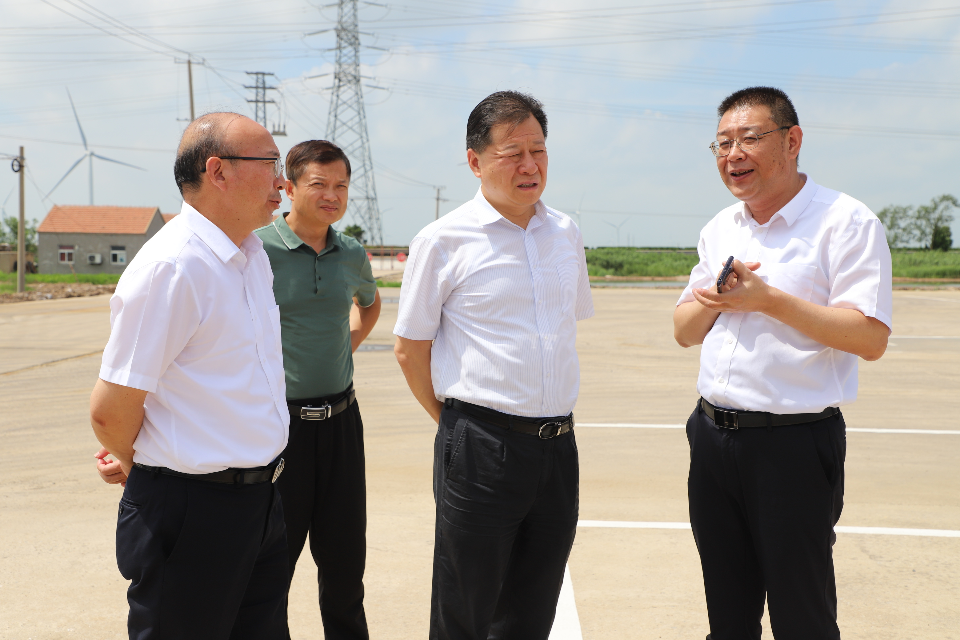 8月2日,连云港市副市长高圣华、市政府办公室副主任孙京海、秘书八处副处长孙虎一行人员在工投leyu(中国)公司党委书记、董事长丁锐的陪同下来灌西投资公司调研指导工作。灌西投资公司党委书记、董事长孙政权、总经理吴卫平、常务副总经理徐一林等陪同调研。