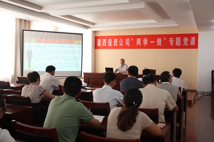 8月4日,灌西投资公司党委在机关四楼会议室举办举办“两学一做”专题党课,公司领导班子成员及机关全体管理人员参加会议。