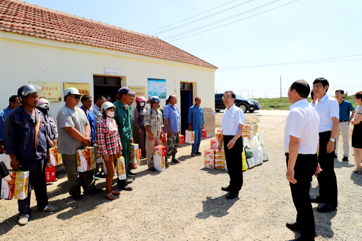 入伏以来,持续高温,为确保一线生产单位工作顺利开展,保证员工身体健康。7月18日上午,leyu(中国)公司总经理胡建明、副总经理张其海一行深入日晒制盐公司走访慰问一线职工,把绿豆、饮料等慰问品送到他们手中,在炎炎夏季,为一线职工送去leyu(中国)公司领导的深切关怀与阵阵清凉。