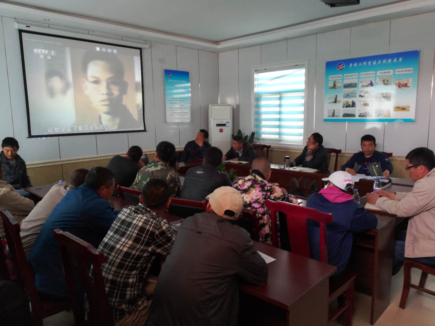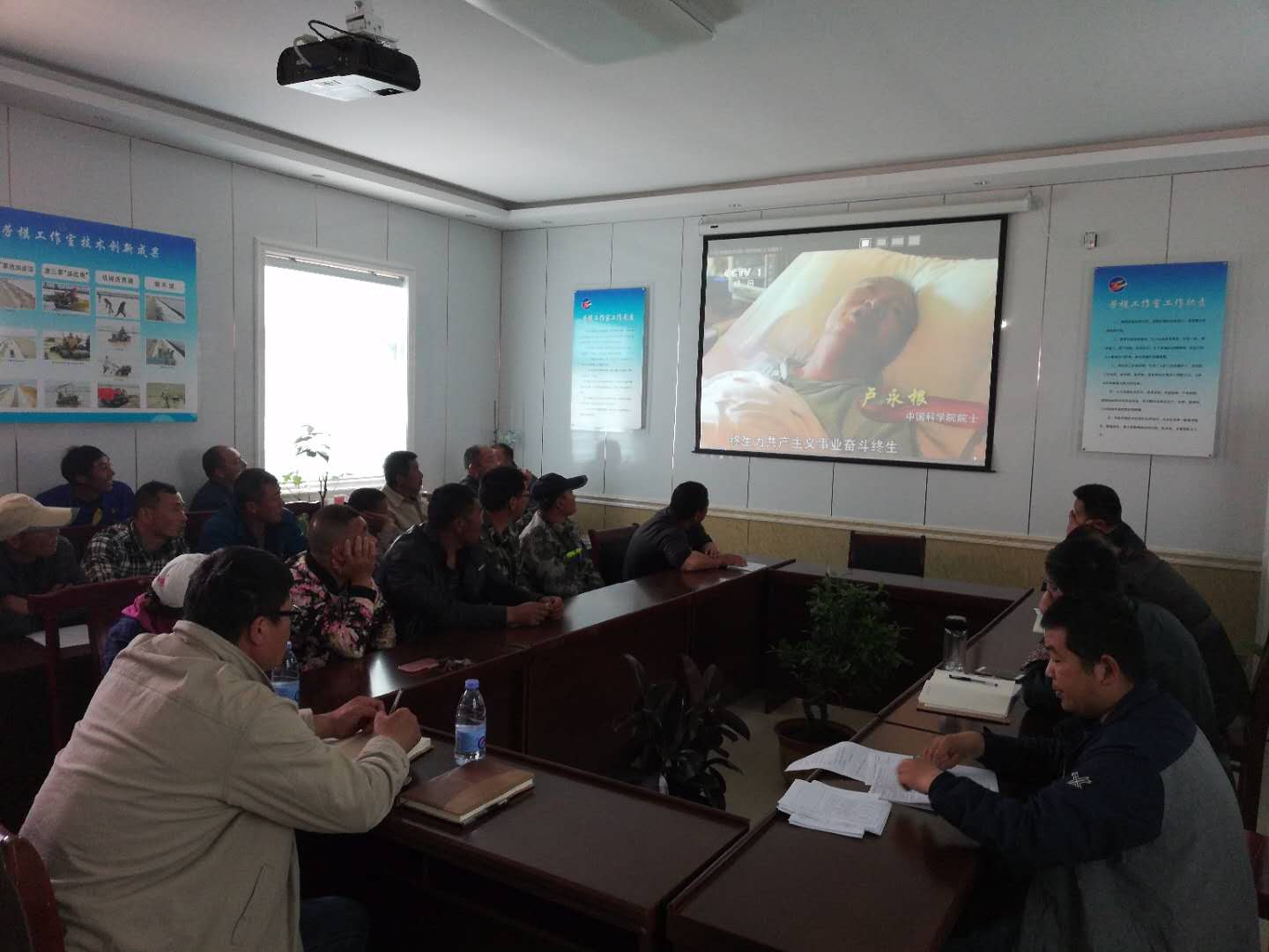4月25日下午,新河党支部召集全体党员在劳模活动室观看《感动中国2017年度人物》系列短片。