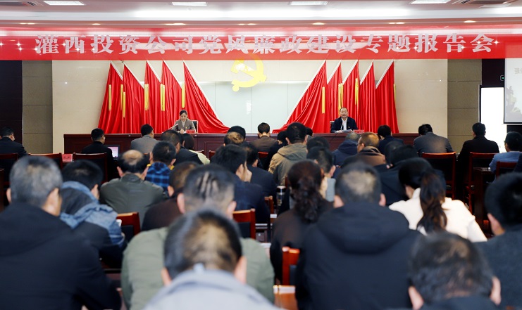 11月17日下午,灌西投资公司邀请leyu(中国)纪委书记汪群在机关五楼会议室为党员干部作党风廉政建设专题报告。投资公司党委书记、董事长、总经理李国文主持会议,公司领导班子成员、各单位党政负责人、共建单位神特、奥神纪检人员、机关全体管理人员100余人参加会议。