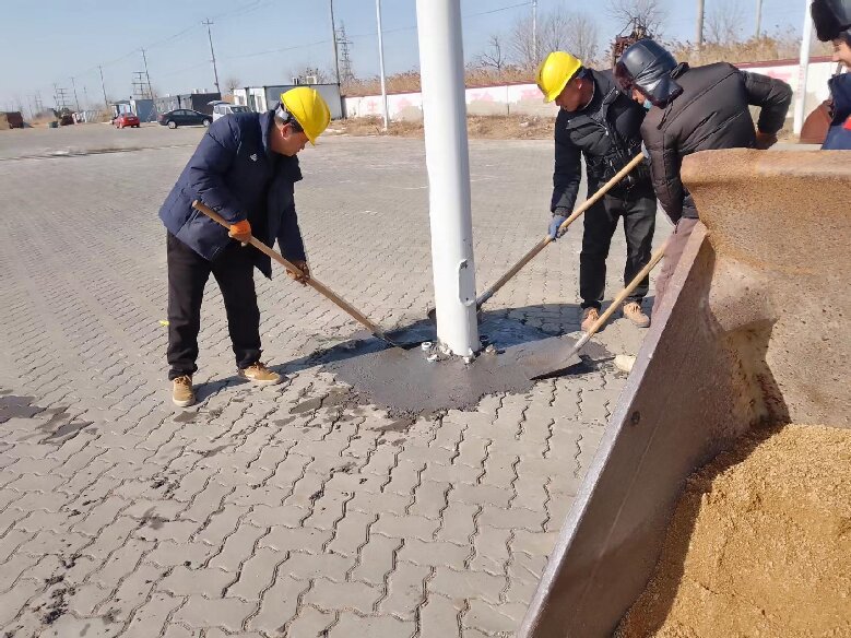 宵洋码头场地路灯基座,由于运输车辆长期辗压,出现松动积水现象,刮风时路灯灯杆左右摇摆,存在一定的安全隐患。宵洋公司发现隐患第一时间进整改,组织人员对路灯底座淤泥进行清理,埋件重新加固,用水泥混凝土浇灌,镙栓校正,再把水泥抹平。整个面积大约八平方,部分砖石也进行铺垫,重新撒了沙子,夯实安全生产基础。同时,对老化的设备设施也进行升级改造,对消防栓支架进行切割焊接,滑板减速机锈蚀严重,齿轮断裂,失去了原有的承载能力,构件破件,导致无法使用,重新添置一台大功率的机器,强化了设备质量,提升运输生产效率,码头陈列设施升级改造,美化了工作区域环境,为促进公司稳定发展保驾护航。(宵洋物流公司 胡秀同)