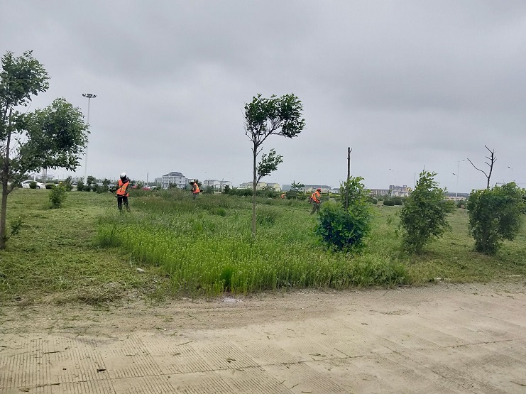 春季是绿化养护的黄金季节,为了切实做好春季绿化养护工作,南翼公司抓住当前有利时机,努力做好临港产业区行政中心绿化修剪养护管理工作,确保苗木、草坪的正常生长。为提高整体绿化水平,改善园区环境质量,打造绿色办公环境,近日来,绿化保洁分公司养护人员对辖区内绿化草坪进行除杂草、修剪、等维护工作,以确保辖区绿化绿意盎然。在园区的主干道上,只见绿化养护人员正手持除草机奔走于各块草坪之间,伴随着除草机嗡嗡嗡的声音,一片片碎草落到地上,随之而来的是阵阵清新的青草味道,被维护过的草坪又恢复到了往日生机勃勃的景象。(杨庆明)