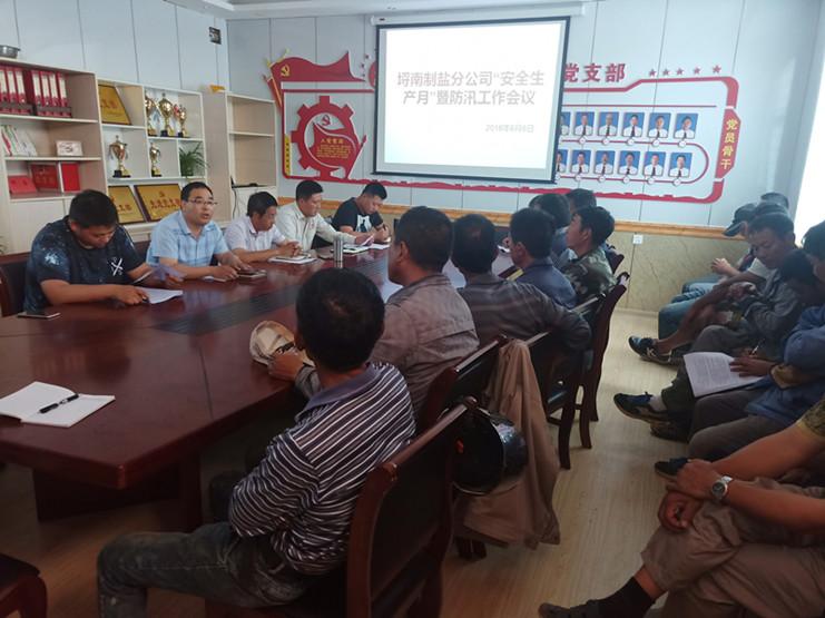 今天下午2点半埒南制盐分公司召开“安全生产月”暨防汛工作会议,会议由庄忠明书记主持,埒南全体班组长和党员参加会议。