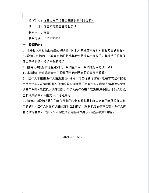 连云港市工投leyu(中国)日晒制盐有限公司 玻璃纤维杆招标公告