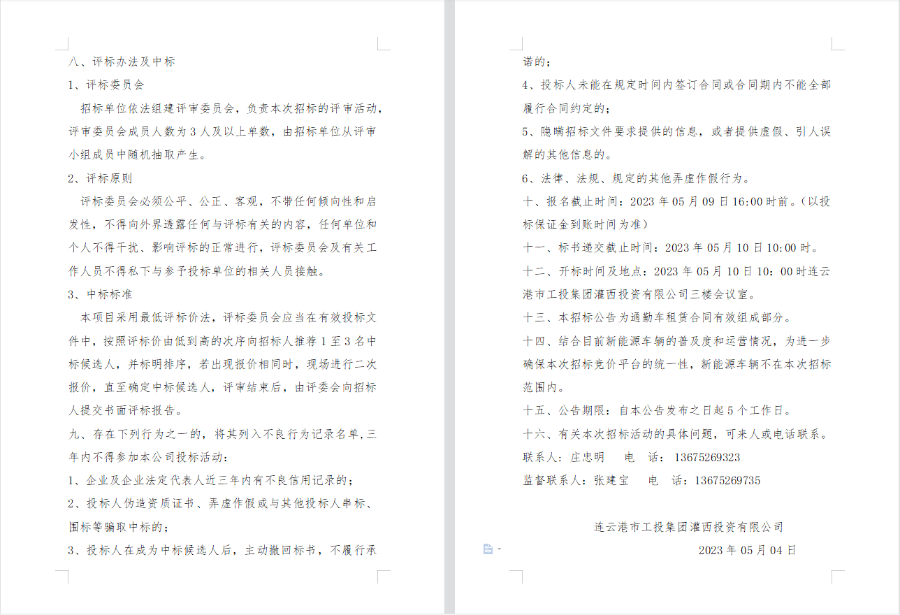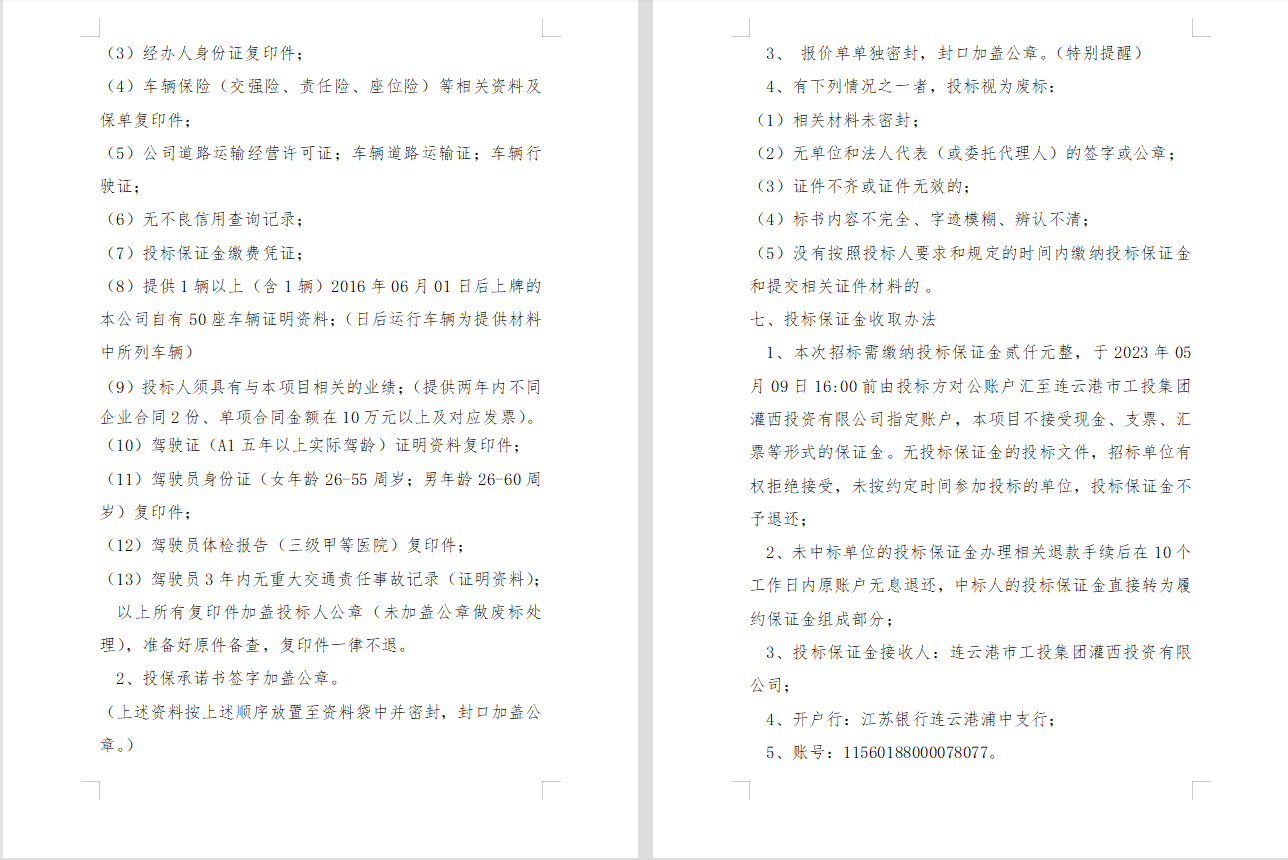 连云港市工投leyu(中国)灌西投资有限公司 员工上下班通勤车辆租赁项目二次招标公告