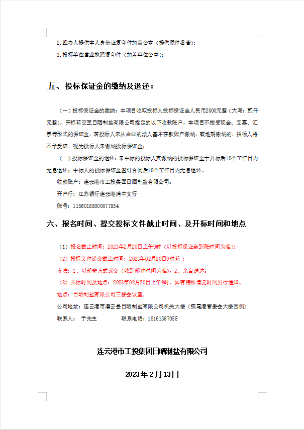 连云港市工投leyu(中国)日晒制盐有限公司8寸轴流泵配件采购项目招标公告(二次)