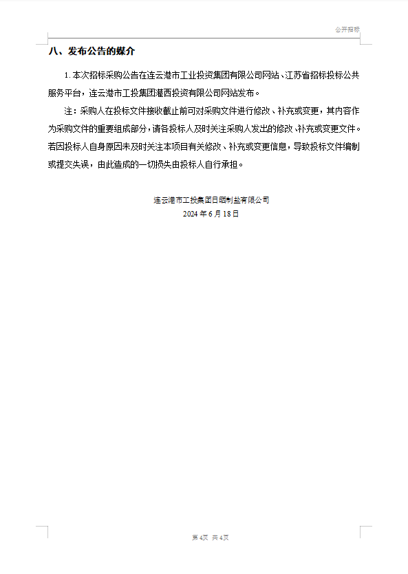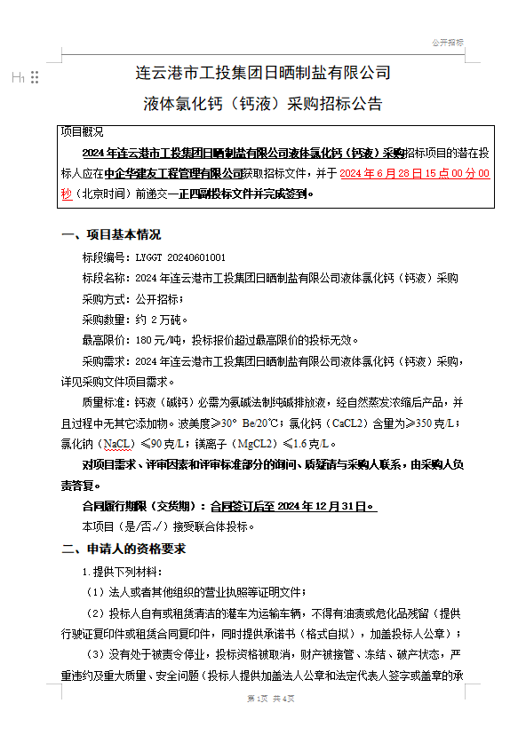 日晒制盐公司 液体氯化钙(钙液)采购招标公告