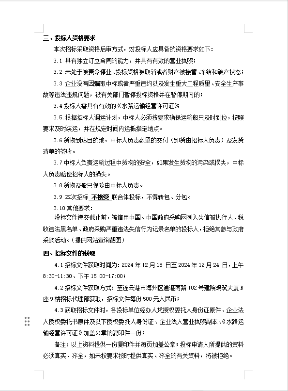 连云港宵洋物流有限公司原盐内河船舶运输合格供应商采购招标公告