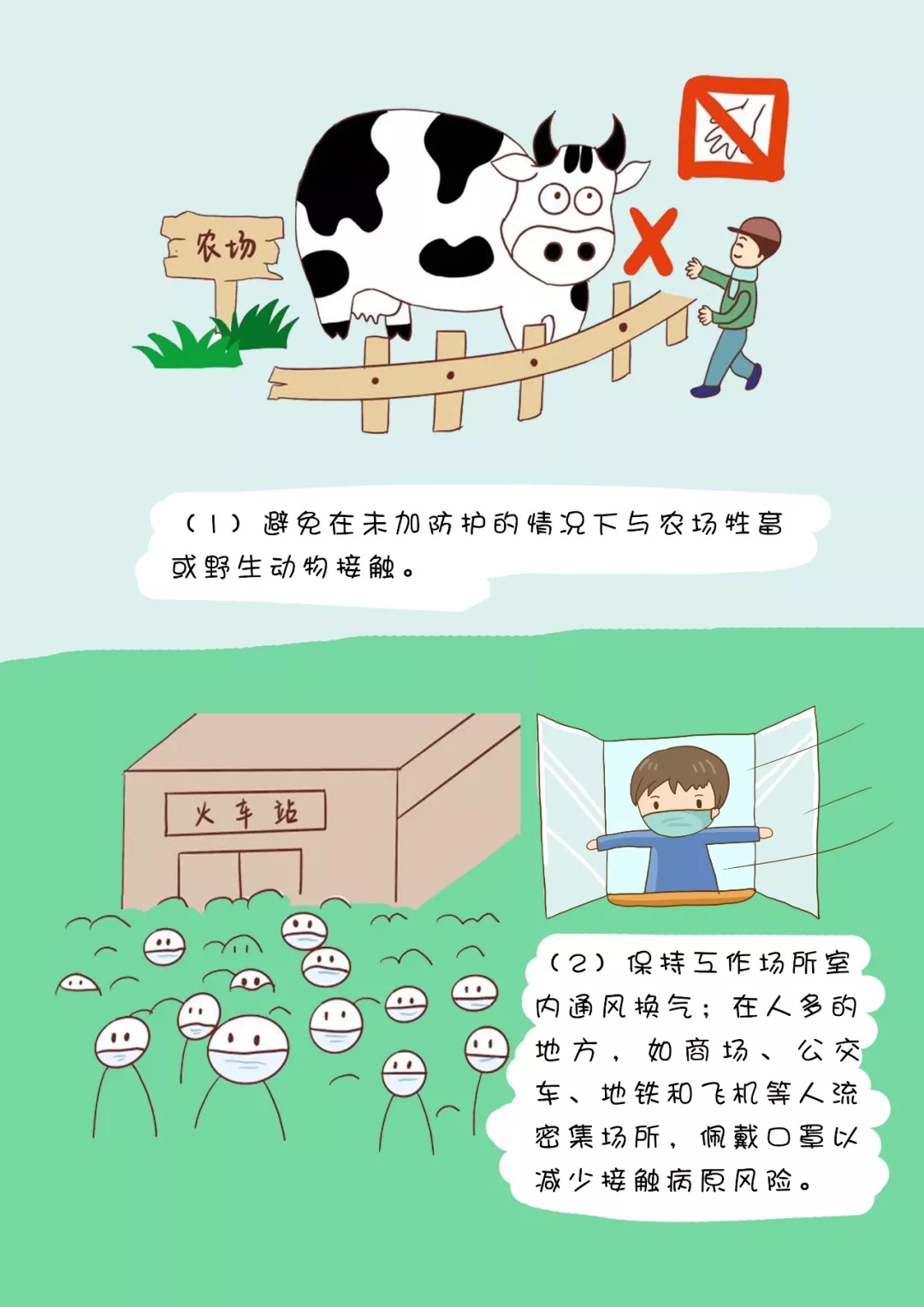 (1)避免在未加防护的情况下与农场牲畜或野生动物接触。