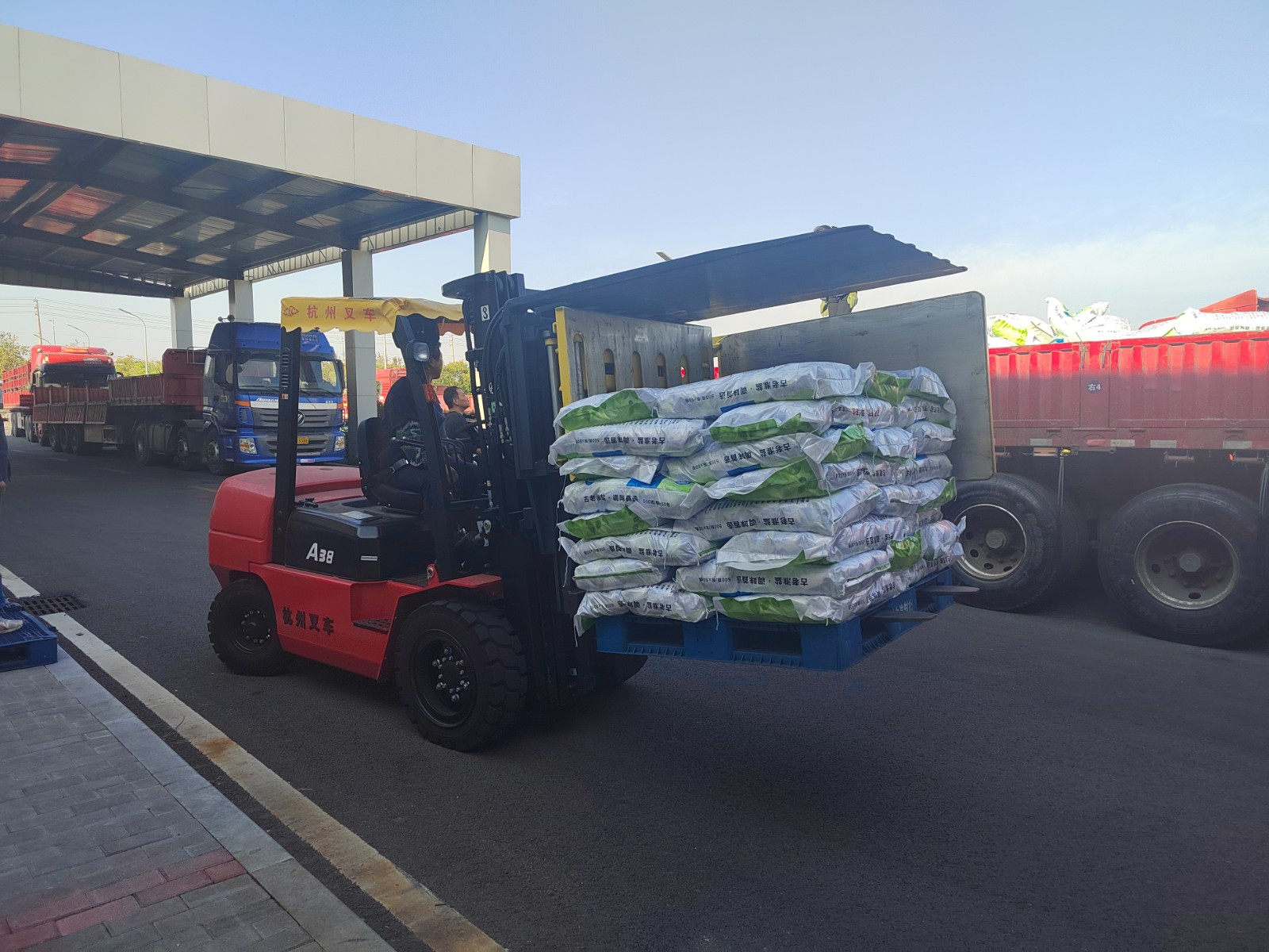 公司进入“大干100天,冲刺双二零”关键阶段,装车量激增,一辆辆卡车在厂区内排队待装。时间紧,任务重,面对巨大的装车压力,装卸班组充分利用旋转叉车特性,开展分区分组装车作业,极大减少了人力成本和劳动强度,提高了工作效率,为确保装车任务的顺利完成提供有力保障。(徐丹丹)