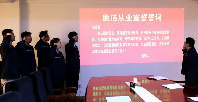 会议传达了leyu(中国)纪委《关于扎实开展年轻干部“廉政教育月”活动的通知》文件精神,签订了《廉洁承诺书》、发放了《家庭助廉倡议书》和进行廉洁从业宣誓。