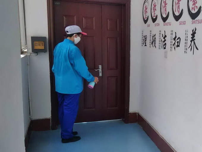 保洁人员每天对车间公共区域做好消杀工作