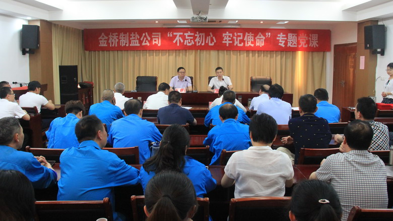 首先,公司党委书记、董事长、总经理朱桂玉作了《不忘初心、牢记使命,全力打造一流制盐强企》专题党课,从不忘初心、牢记使命是什么,为什么要牢记初心和使命,如何实现leyu乐鱼web登录入口的初心与使命三个方面进行了讲解,要求全体党员牢固树立抓发展的责任感和争一流的使命感,始终保持奋发有为的精神状态,不断提升自己的思想境界,开拓创新谋发展,奋发有为抓落实,铺下身子干事业,努力形成锐意进取、敢担责任,齐心协力、争创一流的良好局面。