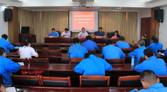 6月5日下午,我公司在三楼会议室召开2020年“安全生产月”活动部署及防汛工作动员会议。公司董事长、党委书记、总经理朱桂玉,副总经理何启明,总经理助理邵琴、李忠祥出席会议。会议由党委副书记、工会主席曹开明主持。各车间单位负责人、分管安全负责人及机关部室负责人参加会议。