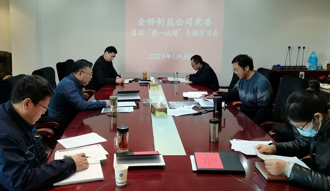 1月30日,我公司落实“第一议题”学习制度,学习习近平总书记论:“健全全面从严治党体系”;总书记论:“实现好维护好发展好最广大人民根本利益”;总书记论:“全面掌握党的二十大精神”。会议由公司党委书记、总经理田磊主持,公司党委班子参加学习。(金宣)