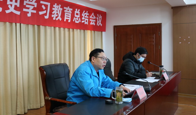 2月18日上午,我公司召开党史学习教育总结会议,深入学习贯彻习近平总书记重要指示精神和党史学习教育总结会议精神,总结公司党史学习教育开展情况,对巩固拓展党史学习教育成果作出部署。公司党史学习教育领导小组组长、党委书记、董事长、总经理朱桂玉作讲话;公司党史学习教育领导小组副组长、党委副书记、纪委书记、工会主席曹开明主持会议并传达了习近平总书记重要指示精神和党史学习教育总结会议精神。副总经理李忠祥,总经理助理邵琴、凌家佳,公司党史学习领导小组成员及中层副职以上管理人员参加会议。