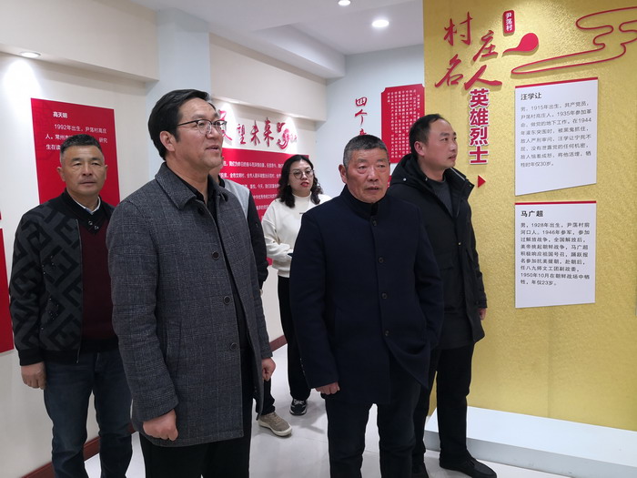 曹开明一行参观了该村党员活动室、党史室、村史陈列室,听取了尹荡村党总支书记孙克玉对该村概况的介绍。双方就党史学习、文明共建和党建工作开展等方面进行了深入的沟通交流。