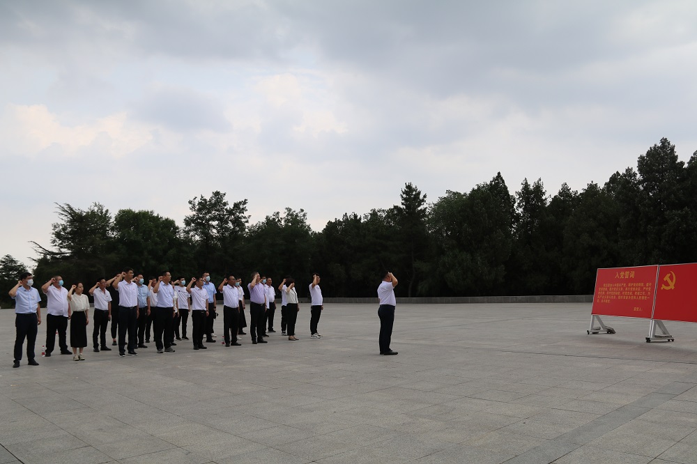 在“七一”即将到来之际,为庆祝中国共产党成立101周年,继承和发扬党的光荣传统和优良作风,6月30日下午,资产公司党支部副书记王顺友带领部分支部党员赴安峰山烈士陵园参加海州片区组织的“喜迎二十大,永远跟党走”主题实景教育活动。 在革命烈士纪念碑前,党员们向革命烈士敬献鲜花,表达对革命先烈的无比敬意和深切怀念。随后,共建单位党员们一起,面向鲜红的党旗和高耸的纪念碑,郑重地举起右手、握紧拳头,庄严宣誓。