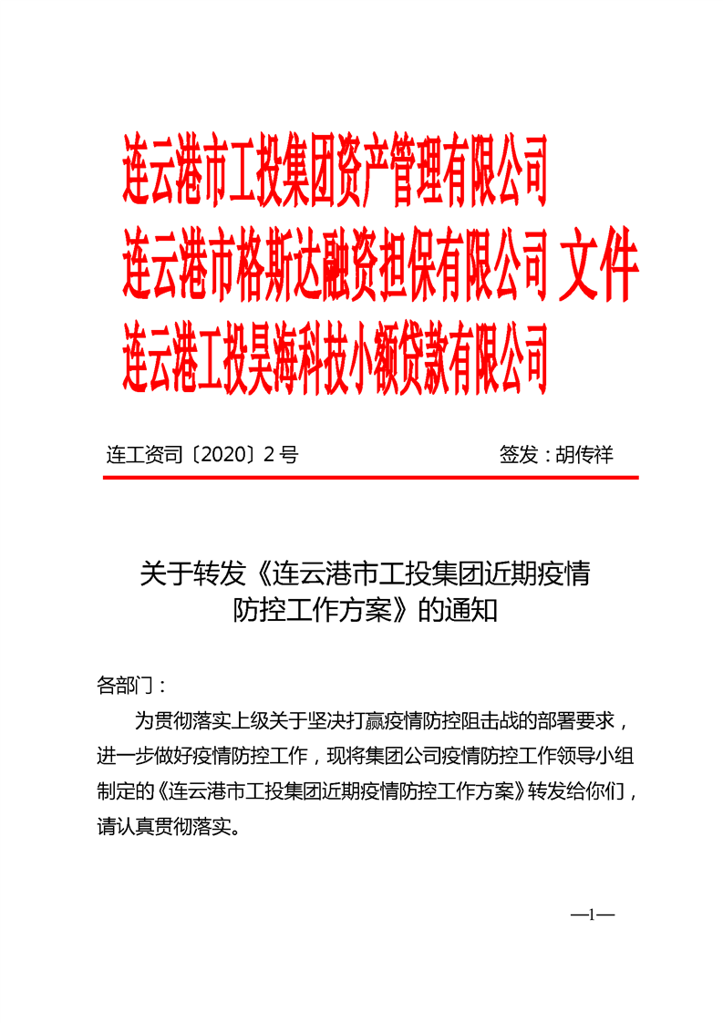《连云港市工投leyu(中国)近期疫情防控工作方案》的通知